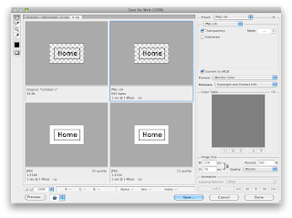You can see the original is 211k and it even gives you the time it will take to load up on dial-up internet and compresses the colour palette as you can see on the right.